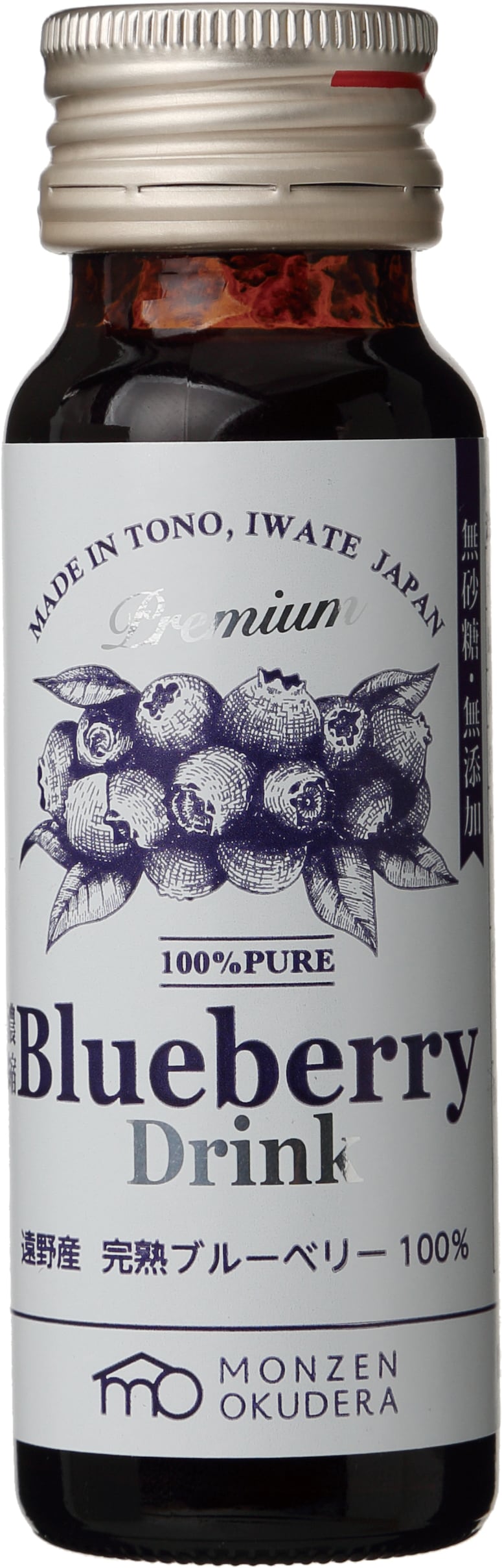 門前おくでらブルーベリー園で栽培された複数品種のブルーベリーをブレンドした濃縮ブルーベリードリンク。飲みごたえのある50mlサイズでRubelと比べてサラッとした喉越しの良い仕上がりです。